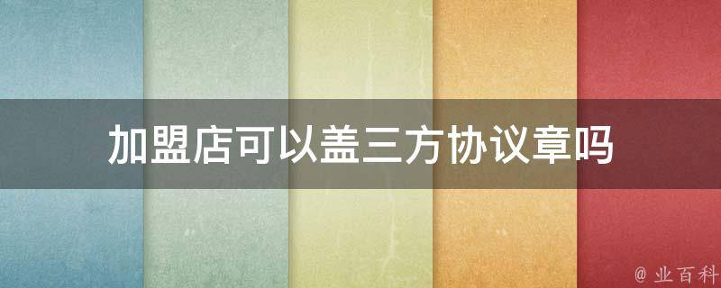加盟店可以盖三方协议章。三方协议是指全国普通高等学校毕业生就业协议书,并没有明确规定必须是政府或者国营企业,只要是正规企业,都可以签订就业协议。三方协议一般在毕业生到单位报到、用人单位正式接收后自行终止,三方协议一般由国家教育部或各省、市、自治区就业主管部门统一制表。
