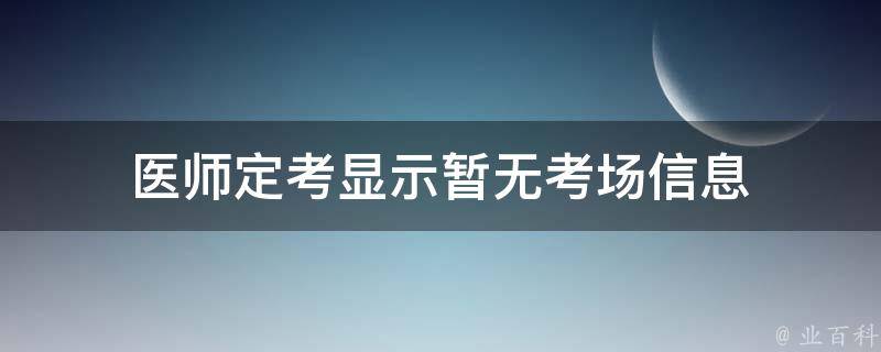 医师定考显示暂无考场信息,意味着在本次考核周期内,该医师没有预约或分配到具体的考试考场。这可能是由于各种原因,例如该医师的考核时间还未到达、考场资源紧张、预约系统故障等。如果该医师已经预约了考场,但是仍然显示暂无考场,可能是由于考试机构还未分配考场、考场时间冲突、考试政策调整等原因导致的信息延迟。医师需要密切关注考试通知和预约信息,及时获取最新的考核安排。