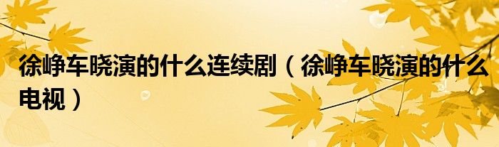 大家好,小夏来为大家讲解下。徐峥车晓演的什么连续剧,徐峥车晓演的什么电视很多人还不知道,现在让我们一起来看看吧!