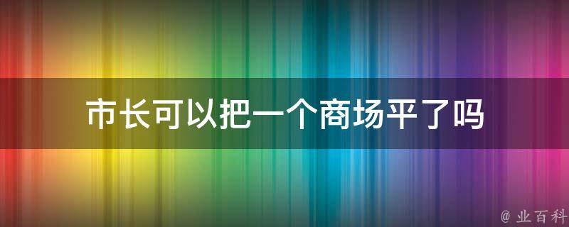 市长不可以把一个商场平了。市长不能直接拆除一个商场。拆除商场需要经过一系列的法律程序和审批程序,并且需要符合城市规划和土地使用规定。在拆除商场之前,市长需要与相关部门协商,并获得相关部门的批准和支持。