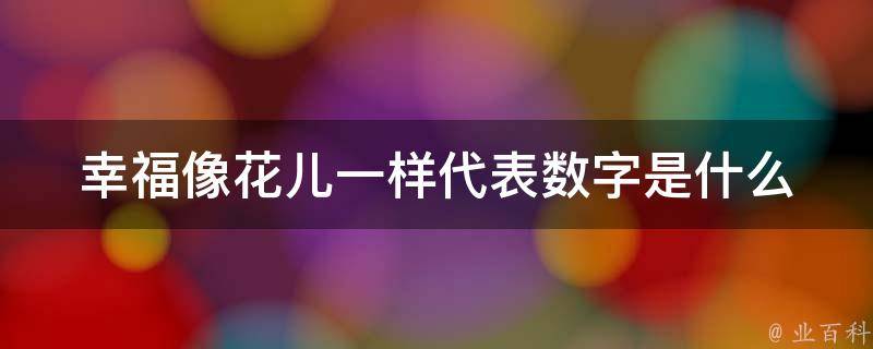 幸福像花儿一样代表数字54,可以从幸福像花儿一样的笔画入手去猜数字。幸字8笔画、福字13笔画、像字13笔画、花字7笔画、儿字2笔画、一字1笔画、样字10笔画,7个字一共是8+13+13+7+2+1+10=54笔。因此幸福像花儿一样代表数字54。