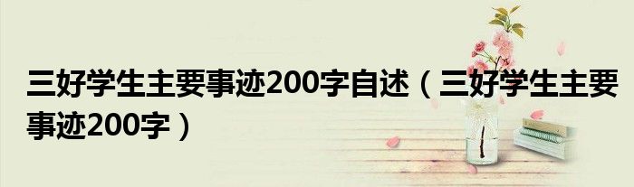 大家好,我是小科,我来为大家解答以上问题。三好学生主要事迹200字自述,三好学生主要事迹200字很多人还不知道,现在让我们一起来看看吧!