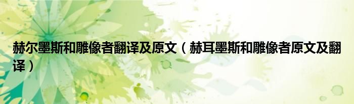 大家好,小联来为大家解答以上的问题。赫尔墨斯和雕像者翻译及原文,赫耳墨斯和雕像者原文及翻译这个很多人还不知道,现在让我们一起来看看吧!