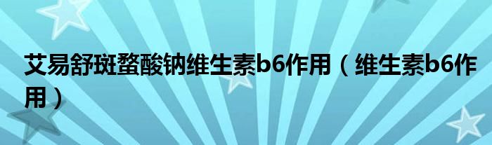 大家好,乐天来为大家解答以下的问题,艾易舒斑蝥酸钠维生素b6作用,维生素b6作用很多人还不知道,现在让我们一起来看看吧!