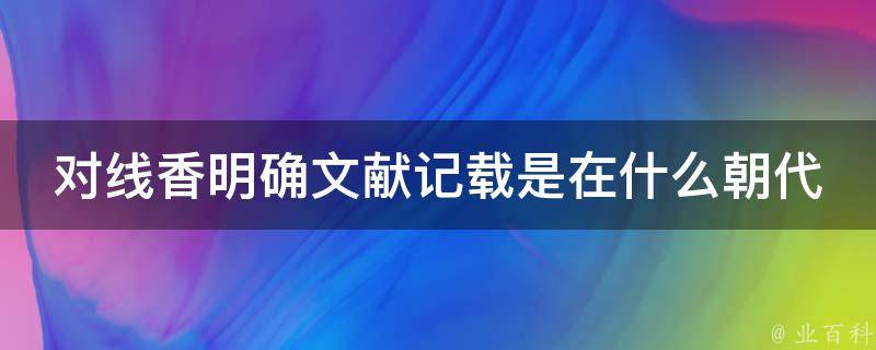 对线香明确文献记载是在元代。熊进祥《析津志》风俗条,湛露坊自南而转北,多是雕刻、押字与造象牙匙箸者,并诸般线香。李存《俟庵集》卷二十九《慰张主簿》,谨具线香一炷,点心粗菜,为太夫人灵几之献。