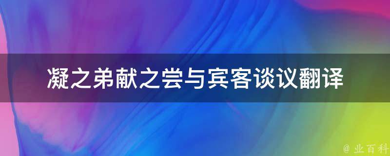 凝之弟献之尝与宾客谈议翻译是:王凝之的弟弟王献之曾经与客人讨论切磋问题。凝之弟献之尝与宾客谈议里的尝是曾经的意思。此句出自《王凝之妻谢氏传》:凝之弟献之尝与宾客谈议,词理将屈,道韫遣婢白献之曰:欲为小郎解围。乃施青绫步鄣自蔽,申献之前议,客不能屈。翻译过来的意思是:王凝之的弟弟王献之曾经与客人讨论切磋问题,将要理屈词穷了,谢道韫叫婢女告诉王献之说:想替小弟解围。王献之便请谢道韫坐在青绫帐后,提示他大辩之策,逐使宾客张口结舌,无一能对。