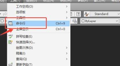 鼠标左击弹出工具页面,找到命令行,鼠标左键单击确认即可调出命令栏。