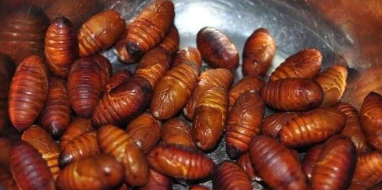 材料:蚕蛹200g、油适量、盐适量、花椒大料适量、干红椒适量、香菜适量、葱姜蒜适量、酱油适量、糖适量。