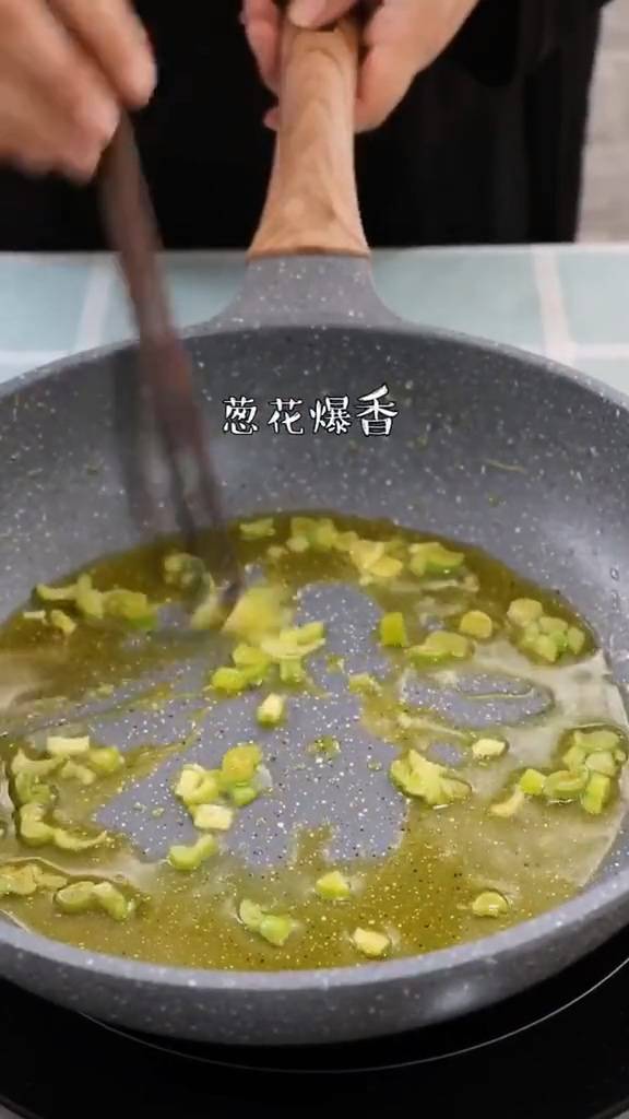 6、加入粉条,将粉条煮软后,加入鸡蛋、韭菜、盐,翻炒至韭菜变色出锅即可。