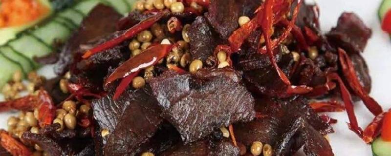 最佳答案用料:牛干巴适量、蒜苗叶2根、干辣椒适量、花椒粒适量、姜片适量、料酒、鸡精。1、牛干巴切片,牛油和牛肉分开切。2、干辣椒、花椒粒备好。3、蒜苗叶、姜片切好备用。4、把牛油直接放入锅中大火油炸干,放入花椒粒、干辣椒爆香。下姜片翻炒。5、把牛干巴放入锅中继续大火翻炒。6、把蒜苗叶倒入,加...