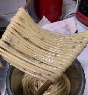 鸡蛋,芝麻,面粉,适量水,搅拌。