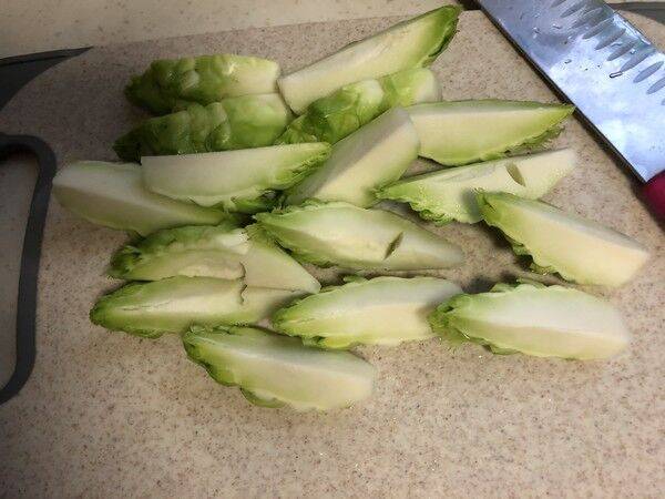3、把儿菜切小。
