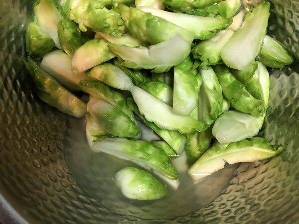 2、用手一个一个把小的儿菜头掰下,洗净。