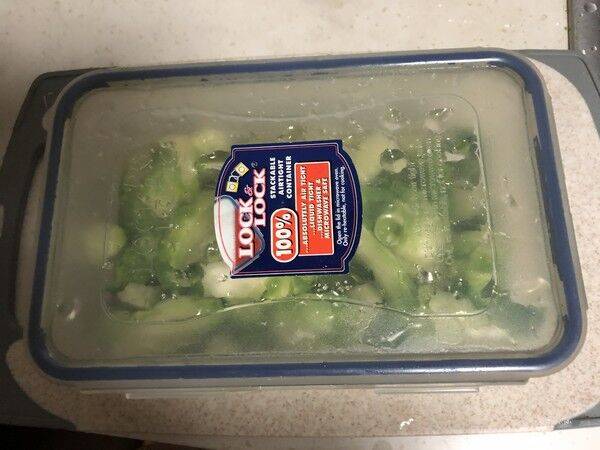 7、把儿菜放入无油无水干净的密封盒里。