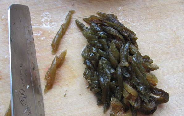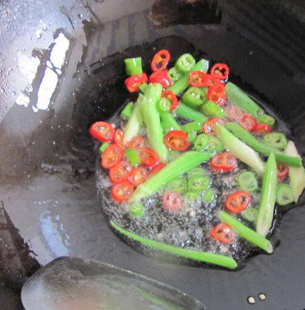 用料:海茸10克、盐3克、生抽1勺、小辣椒2个、鸡精2克、葱2克、姜2克、花生油。