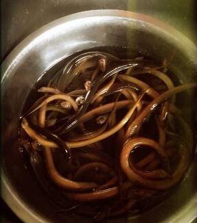 准备食材:黄鳝750克、葱3根、蒜6瓣、姜5片、花椒少量、盐6克、酱油1勺。