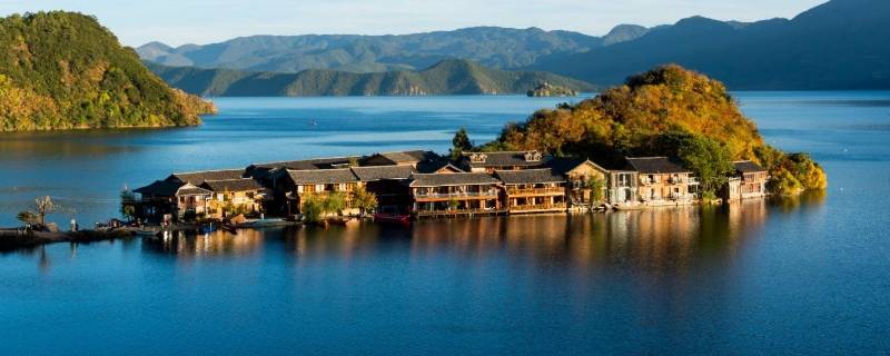 4、泸沽湖中各岛婷婷玉立,形态各异,林木葱郁,翠绿如画,缓缓滑行于碧波之上的猪槽船和徐徐飘浮于水天之间的摩梭民歌,使其更增添几分古朴、几分宁静。