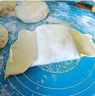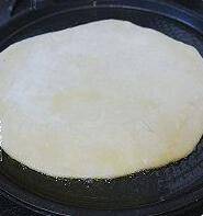 8、电饼铛薄薄地刷底油,放上擀好的油饼,启动电源,合上电饼铛上盖,没有电饼铛可以换成平底锅,小火两面烙至金黄即可。