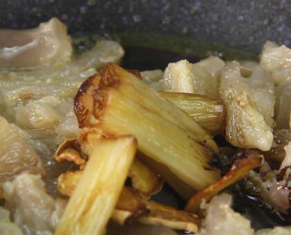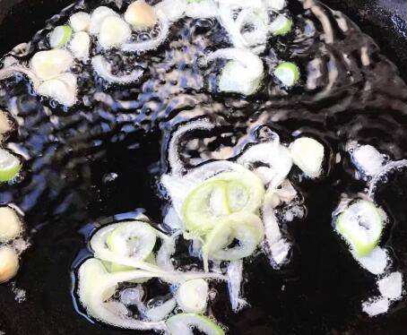 4、锅中倒入适量底油加热放入葱姜蒜爆香。