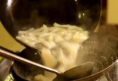 2、锅中水烧沸后倒入蹄筋,焯水捞出备用。