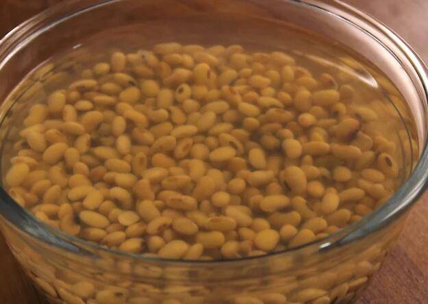 1、把黄豆放到平底锅里,倒入开水没过黄豆。