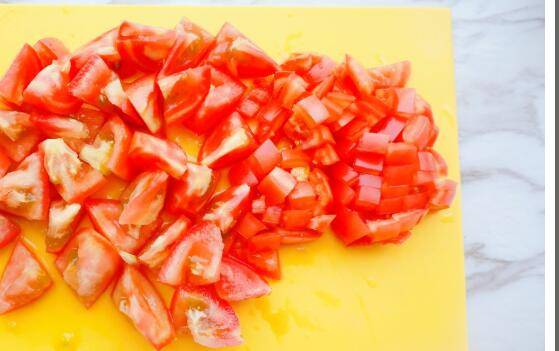 鸡蛋取出,西红柿取1/4切丁,剩下的切块。