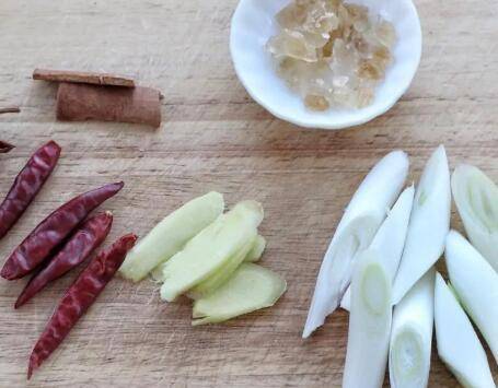 大葱切成小段、姜切片,准备好其他所需辅料。