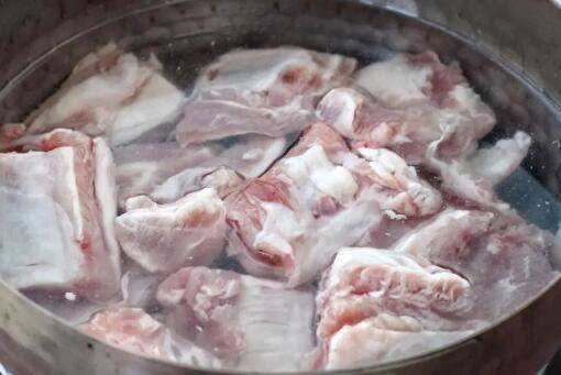 将排骨冷水下锅,大火煮沸后撇去表面浮沫。