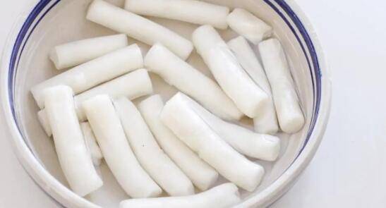 年糕掰开清洗干净,放进水中浸泡约半个小时。
