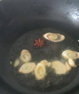 2、放入切好的葱姜蒜八角炒变颜色。