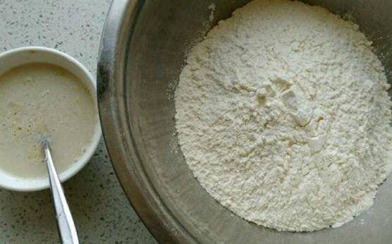 下手和面,水要慢慢加入,和成软硬适中的面团。