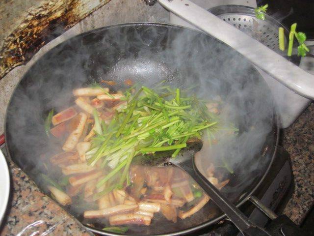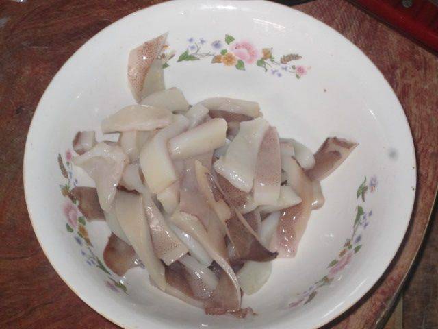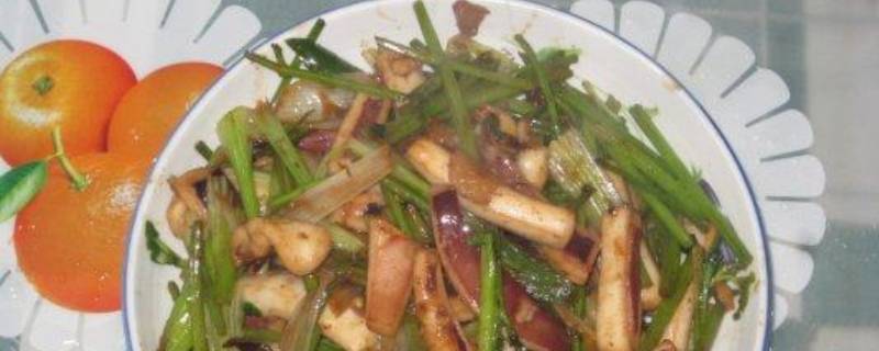 1、准备材料:鱿鱼250克、香菜200克、油适量、盐适量、葱姜蒜适量。