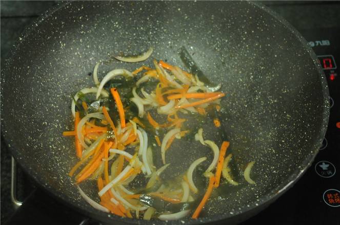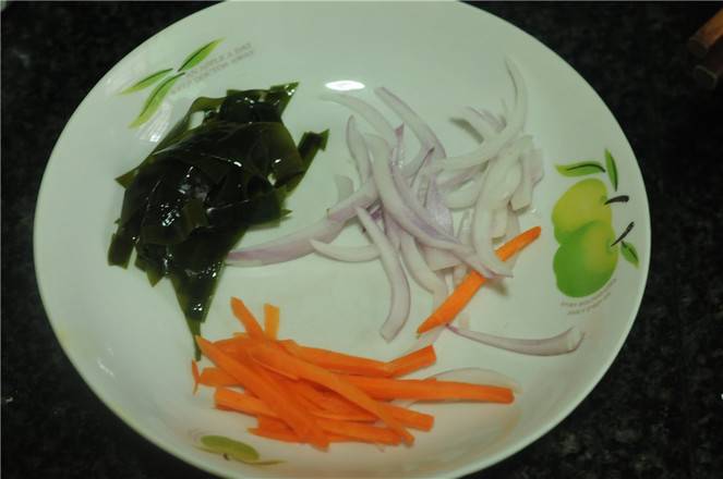 1、海带泡发,洗干净。