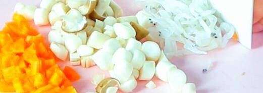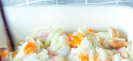 胡萝卜切碎,秀珍菇切碎,银鱼切碎。