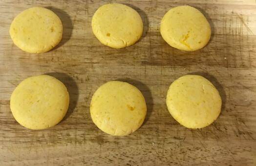 切大小差不多的小剂子,再搓圆压成圆饼。