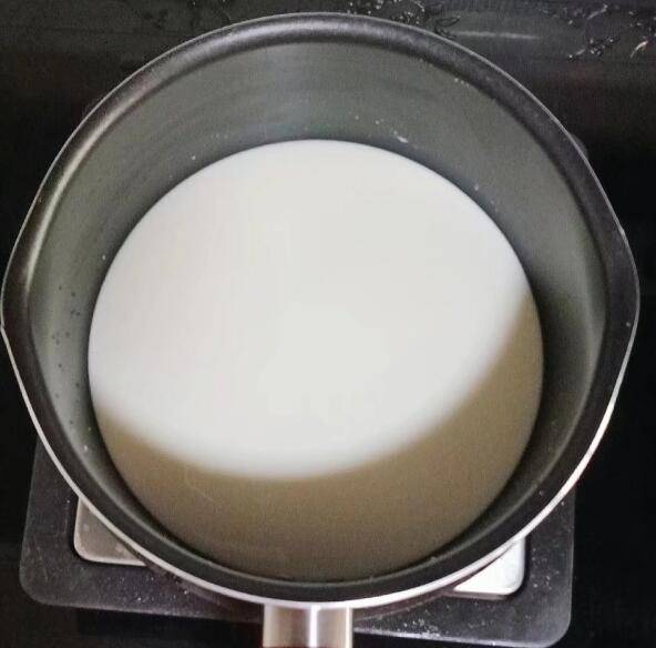 4、牛奶中加入白糖,小火加热至糖融化后关火。