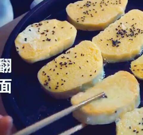 准备食材:馒头1个、鸡蛋2个、盐适量、油适量、芝麻适量。馒头切片,碗中打入2个鸡蛋,放适量盐,打散。平底锅刷油,馒头片沾蛋液,撒芝麻,两面煎熟即可。