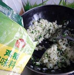 用料:韭菜80克、米饭1碗、盐4克、鸡精适量。