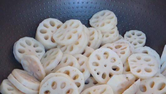 2、热锅,倒油,放入莲藕片。
