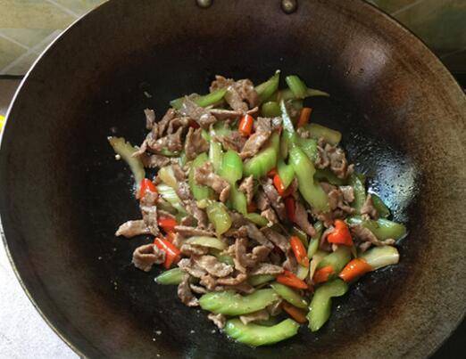 一、芹菜炒瘦肉。准备食材:瘦肉200克、芹菜200克、红椒3个、生姜5克、料酒15毫升、生抽20毫升、胡椒粉1克、鸡粉1克、生粉3克、精盐2克、食用油30毫升。