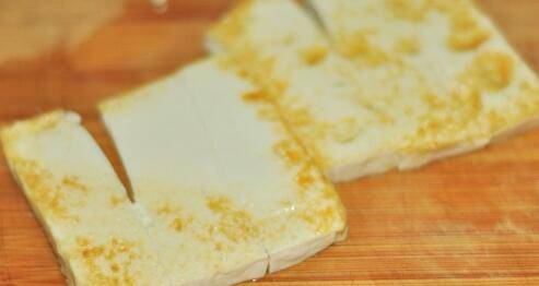 豆腐洗净,切片。萝卜洗净切条状。在碗里将盐1/4勺、米醋2勺、白砂糖1小勺、清酒2勺、生抽2勺混合,搅拌至白砂糖化开。