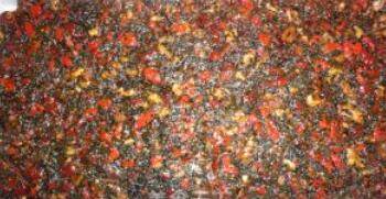 放入枸杞,核桃,黑芝麻,不停搅拌。