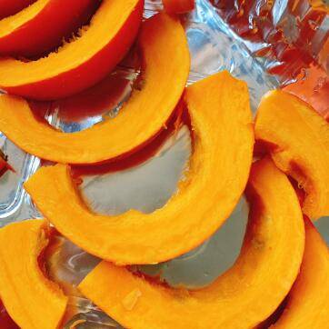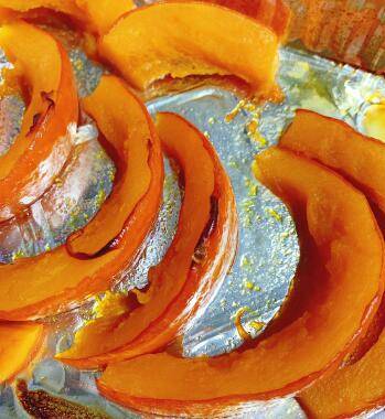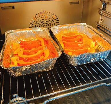 6、再入烤箱烤15分钟,南瓜边缘出现焦糖色即可。