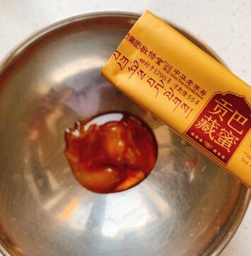 3、两小包九吉公的藏蜜,加点盐、水调匀。