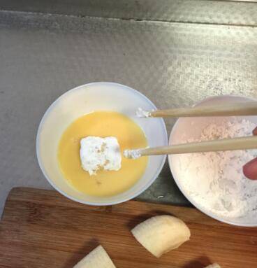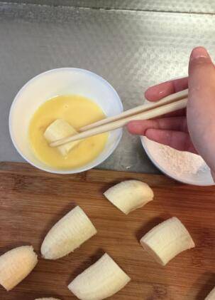 香蕉2个、鸡蛋1个、淀粉若干、面包糠若干、食用油适量。
