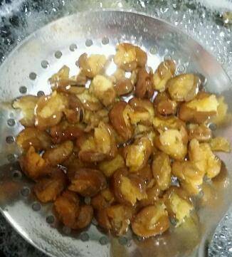 4、炸至豆壳子金黄。用铲子铲的时候有清脆的声音。