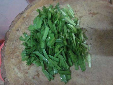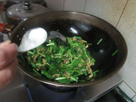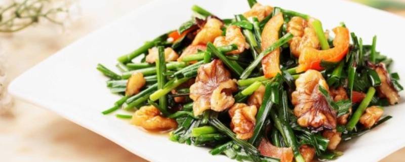 1、准备材料:韭菜250g、核桃仁150g、食盐适量、调和油适量。