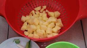 3、土豆切丁泡凉水。