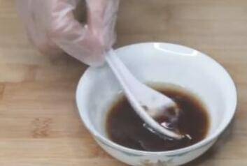 将橄榄油、醋、蜂蜜、生抽依次倒入碗中搅拌均匀。一定要用橄榄油,否则就不是低脂。