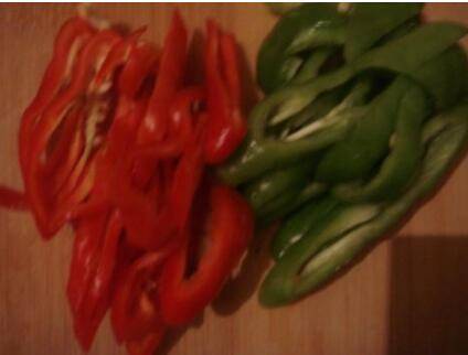 1、豇豆角洗干净,切成段。青辣椒和红辣椒切成段。